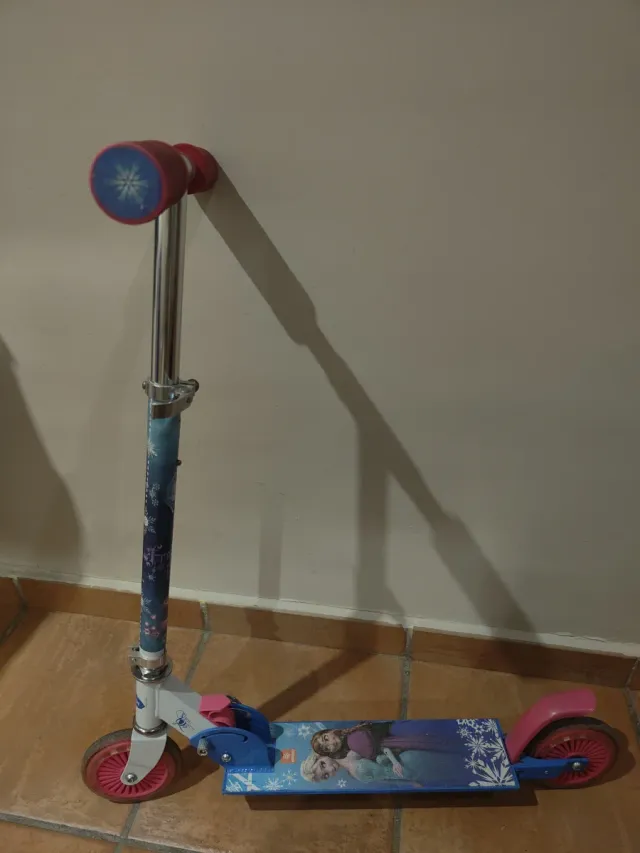 Detalles del productoPatinete con diseño de Frozen, ideal para los más pequeños. Cuenta con un manillar ajustable y ruedas resistentes.