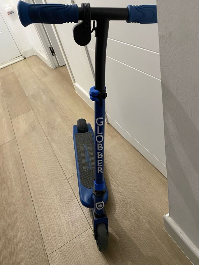 Detalles del productoPatinete de la marca Globber en color azul, diseñado para niños. con luces en los laterales y en las ruedas. usado muy poco por eso se vende.