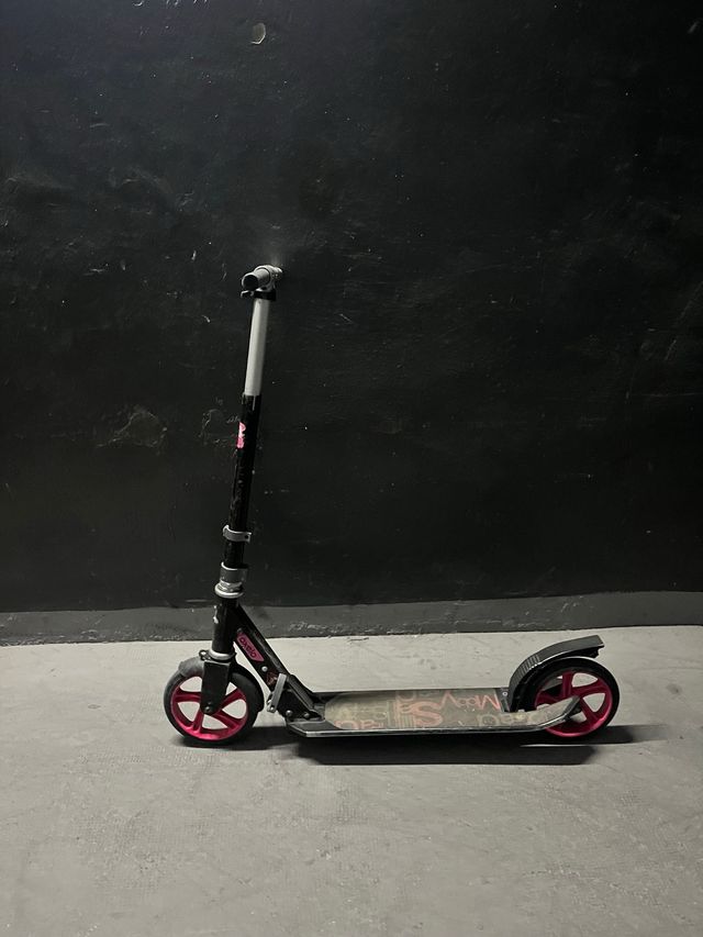 Detalles del productoPatinete de dos ruedas, ideal para niños. Su diseño es llamativo y funcional.