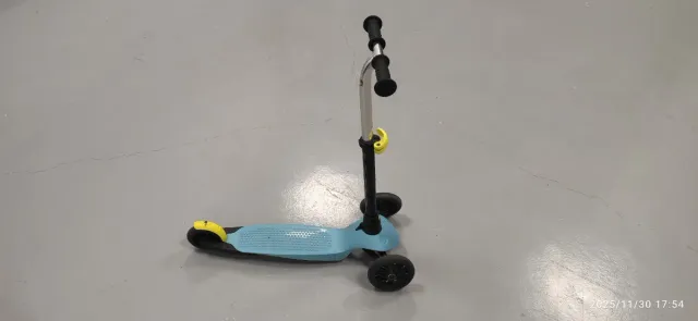 Detalles del productoPatinete de tres ruedas de la marca Oxelo, diseñado para niños. Su color azul lo hace llamativo y divertido.