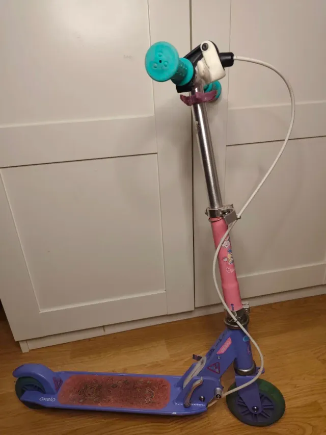 Detalles del productoPatinete infantil de la marca Oxelo, ideal para los más pequeños. Su diseño es llamativo y divertido.