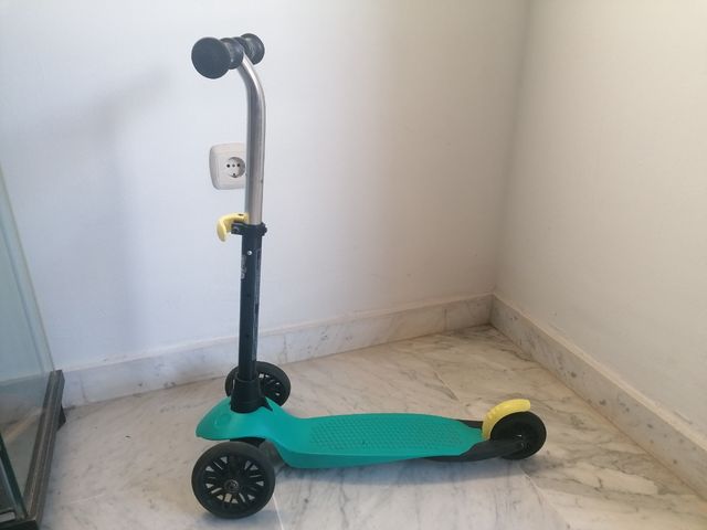 Detalles del productoPatinete infantil en color verde. Está en perfecto estado, ya que apenas se ha usado. Plegable y ligero para facilitar su transporte y almacenamiento. Manillar regulable en altura. Ruedas resistentes.