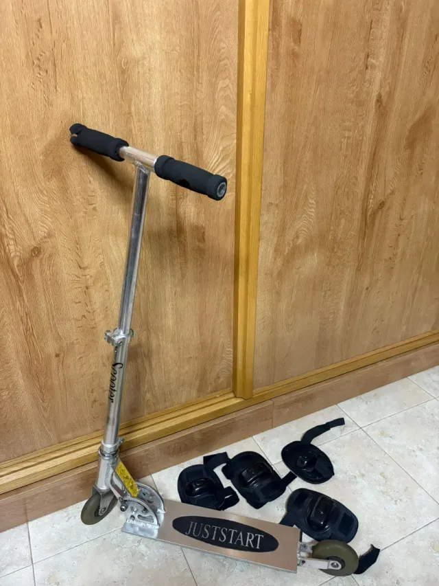 Detalles del productoPatinete infantil plegable de la marca Juststart. Incluye protecciones.