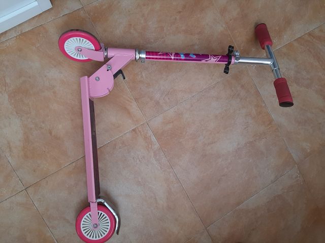 Detalles del productoPatinete infantil de color rosa, perfecto para los más pequeños. Es plegable y fácil de transportar.