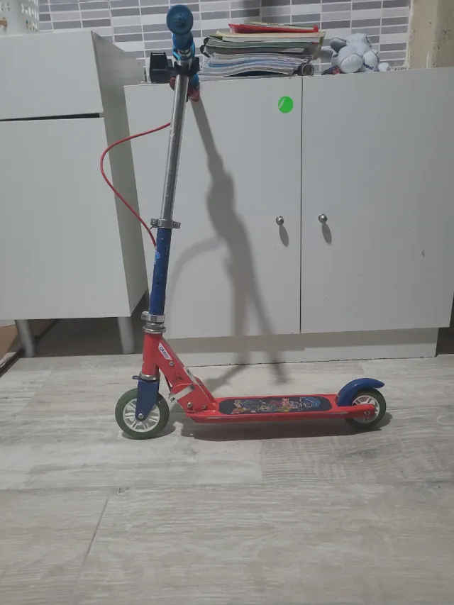 Patinete infantil rojo y azul ajustable y luz noct