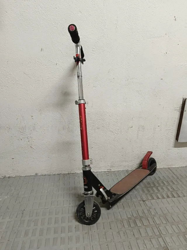 Patinete de dos ruedas con manillar ajustable en dos posiciones - Color principal rojo con detalles en negro.