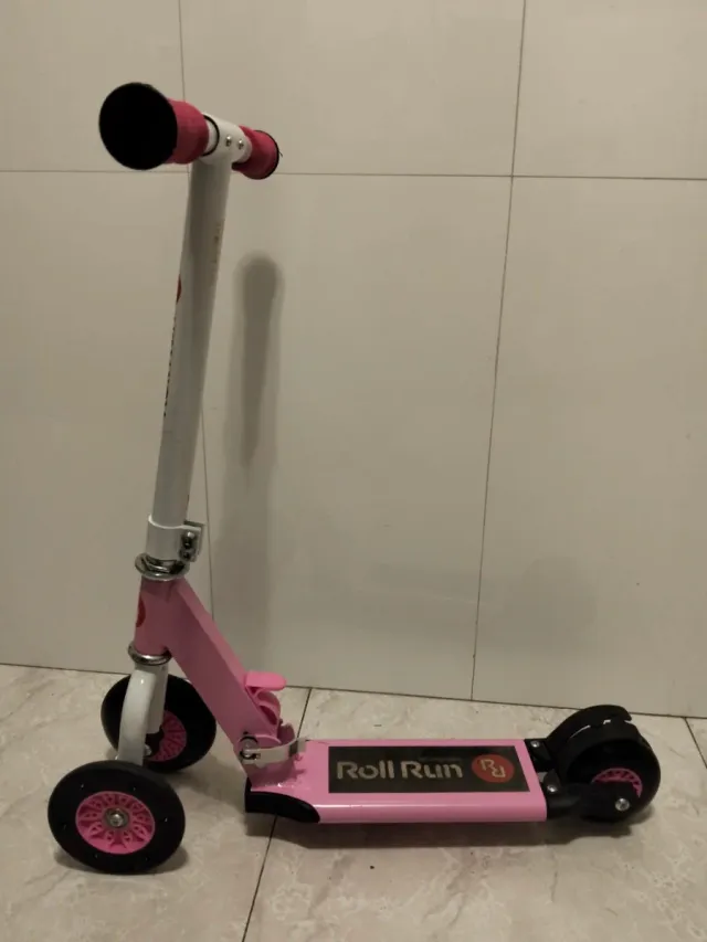 Patinete infantil de la marca Roll Run con cuatro ruedas. De el corte inglés hasta 20 kilos 64 cm alto limpio buen estado - Color rosa.