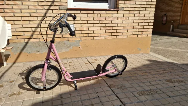 Patinete de dos ruedas en color rosa, ideal para niñas. - Ruedas grandes para mayor estabilidad. - Manillar ajustable en altura. - Plataforma antideslizante.