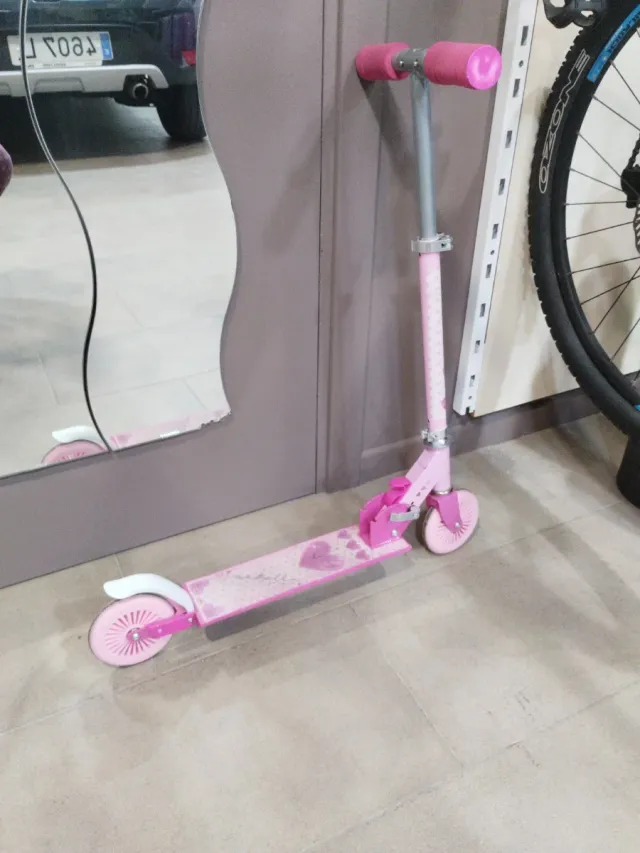 Detalles del productoPatinete infantil de color rosa, perfecto para los más pequeños.