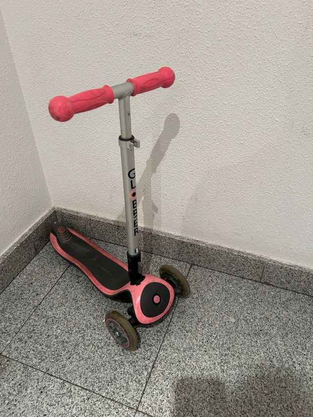 Patinete de tres ruedas en color rosa, ideal para los más pequeños. Su altura es ajustable. - Altura mínima: 65 cm. - Altura máxima: 75 cm.