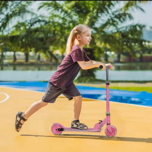 HOMCOM Patinete Infantil Plegable con Luces Música Altura Ajustable Ruedas Brillantes Pedal LED Carga 50kg 67x32x65-78cm Rosa 371-047v00pk ca