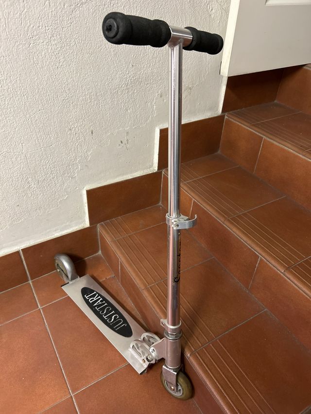 Patinete usado. Ideal para niños y adolescentes. Necesita puesta a punto con aceite en visagras - Marca: JustStar - Material: Aluminio - Color: Plata