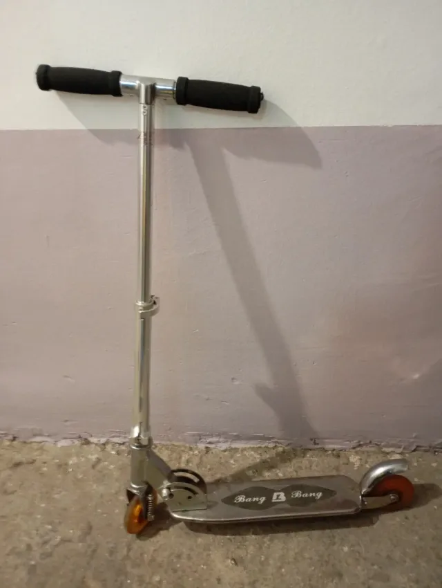 Detalles del productoPatinete metálico para niños, ideal para paseos y diversión al aire libre.
