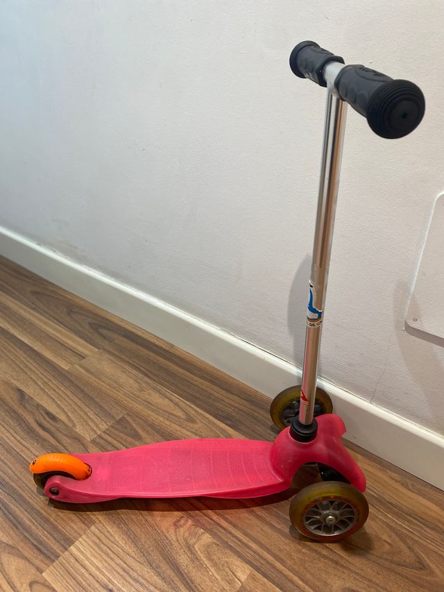Detalles del productoPatinete de tres ruedas en color rosa, ideal para los más pequeños. Marca Micro.