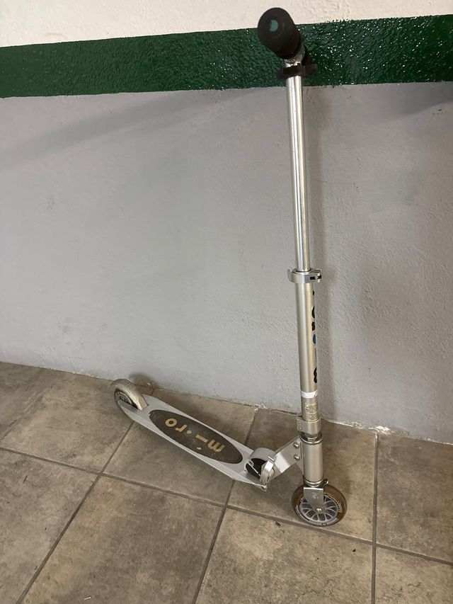 Patinete Micro de dos ruedas, ideal para desplazamientos urbanos. - Fabricado en aluminio. - Manillar ajustable en altura. - Ruedas de goma para un mejor agarre.