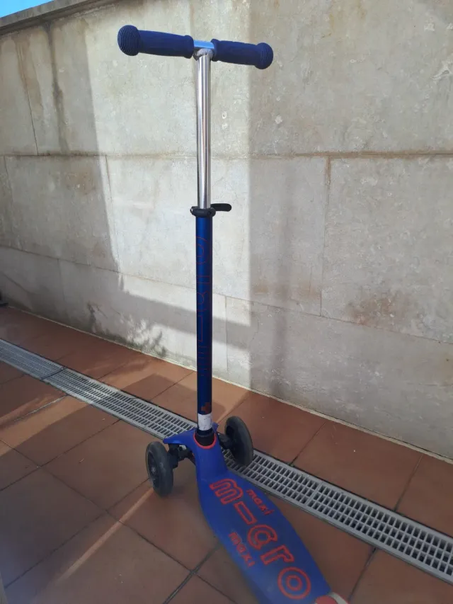 Patinete infantil Micro Maxi en color azul. Ideal para los más pequeños. - Ruedas con luces. - Manillar ajustable. - Plataforma ancha y estable.