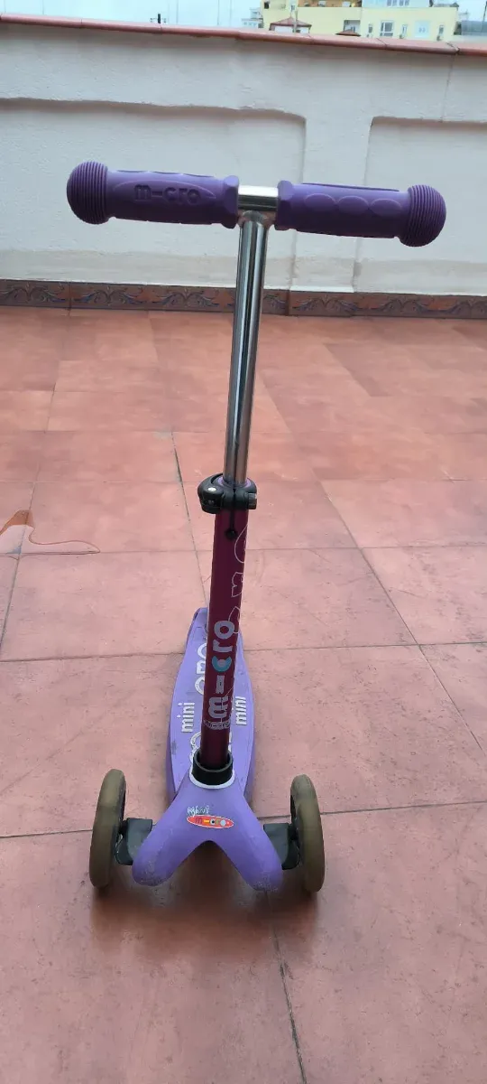 Patinete Micro Mini Deluxe en color morado. Las ruedas delanteras emiten luz LED al rodar. - Modelo: Mini Deluxe LED - Color: Morado - Ruedas con luces LED