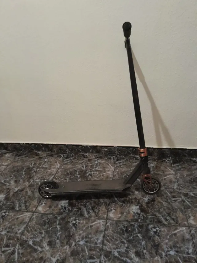 Patinete de estilo urbano con manillar negro y detalles en cobre. NEGOSIABLE - Plataforma ancha para mayor comodidad. - Ruedas de aleación. - Puños negros.