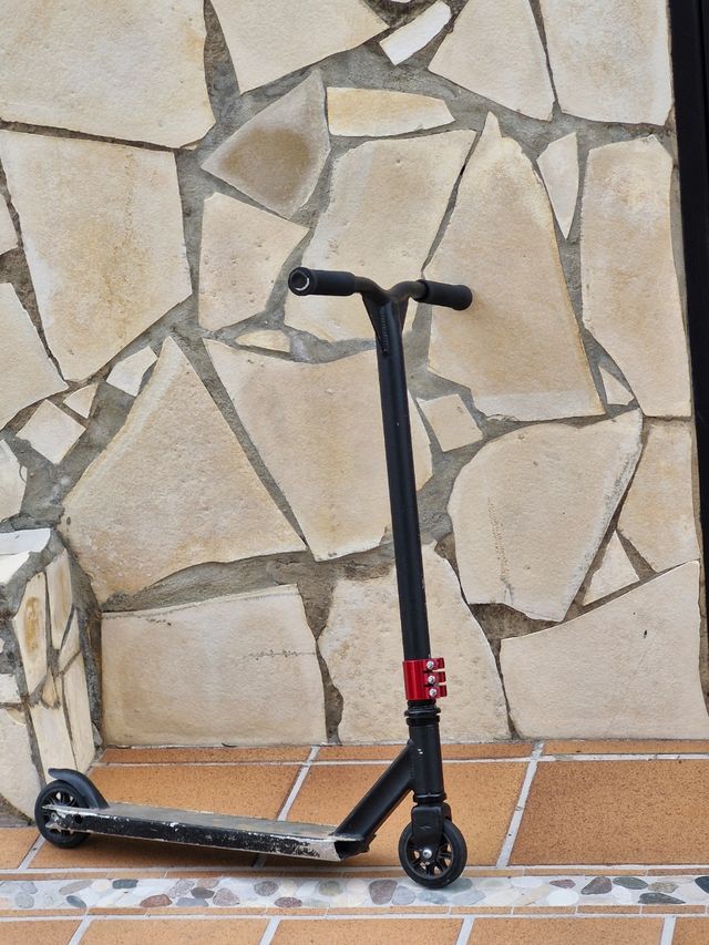 Patinete de estilo urbano, ideal para desplazamientos. - Manillar negro con puños. - Base negra. - Ruedas negras. - Abrazadera de dirección en color rojo.