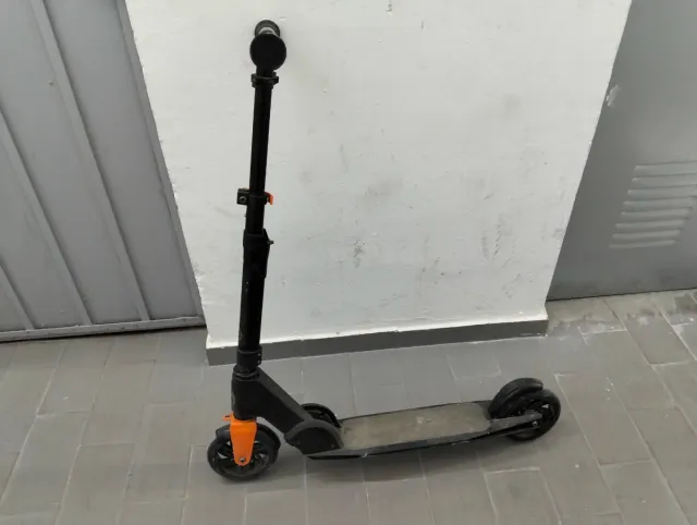 Detalles del productoPatinete de color negro con detalles en naranja. Ideal para desplazamientos urbanos.