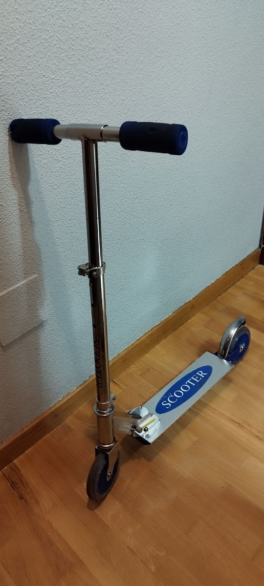 Patinete para niños, hecho de aluminio. Está en buen estado. - Material: Aluminio - Color: Plata y azul
