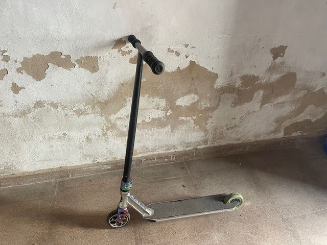 Patinete de la marca Oxelo. - Manillar negro. - Rueda de atras para cambiar - Base gris.
