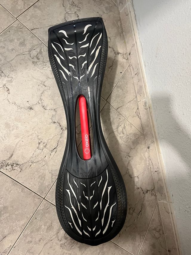 Patinete de dos ruedas con diseño deportivo. - Color negro con detalles blancos. - Barra central roja. - Marca Oxelo.