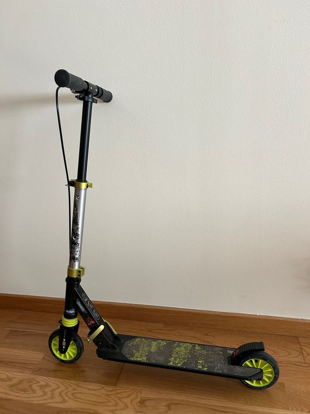 Patinete de la marca Oxelo, ideal para desplazamientos urbanos. - Diseño plegable para facilitar su transporte. - Ruedas de color verde lima. - Plataforma con diseño gráfico.