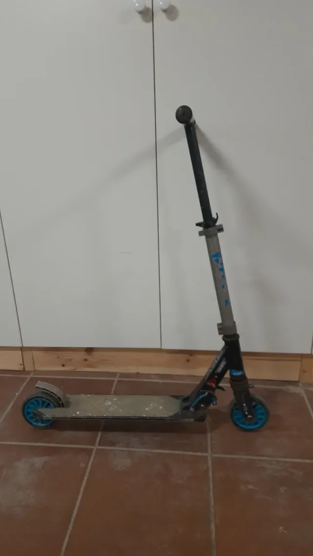 Patinete de la marca Oxelo del decathlon, con signos de desgaste pero aun usable y con las ruedas y cojinetes en buen estado. - Diseño plegable para facilitar su transporte.