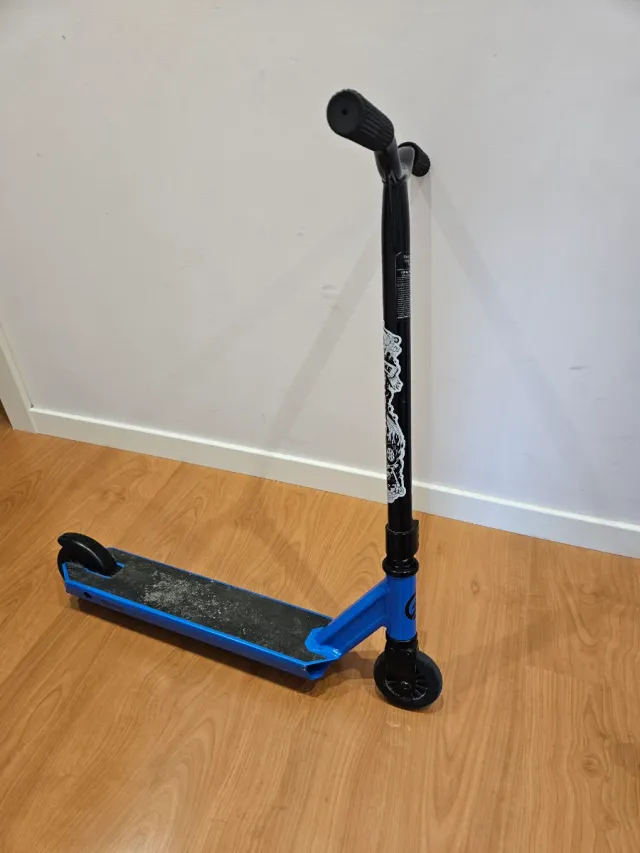 Patinete Oxelo de color azul y negro. - Plataforma con lija. - Ruedas negras. - Manillar negro con puños.