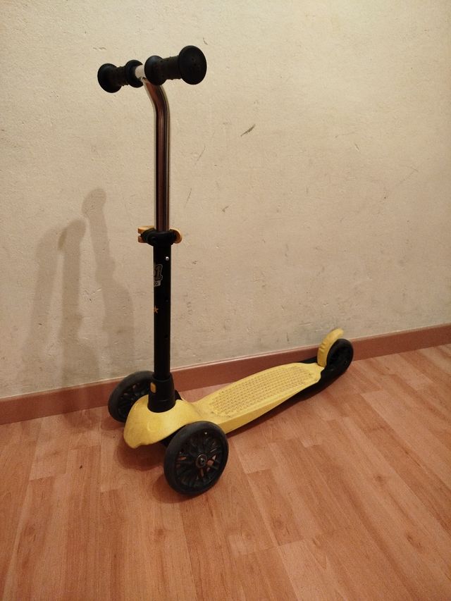Detalles del productoPatinete infantil de tres ruedas en color amarillo y negro. Está en buen estado y listo para usar.