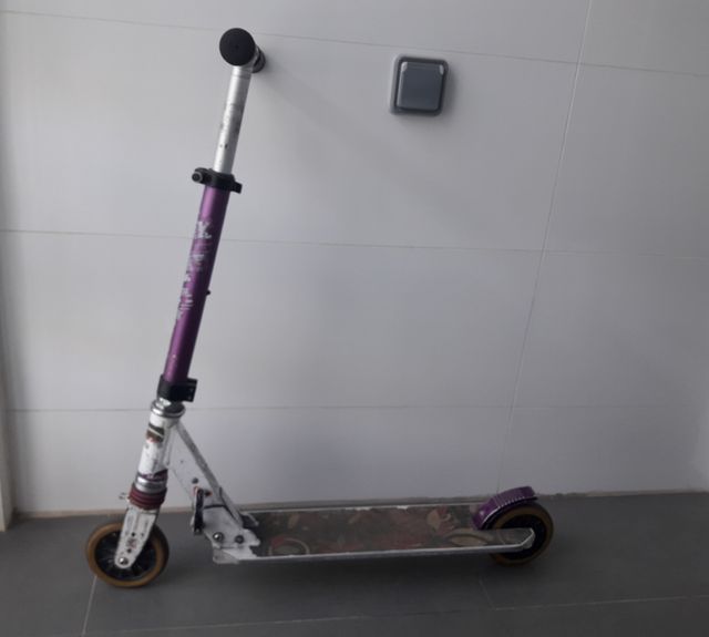 Patinete de la marca Oxelo, ideal para desplazamientos urbanos. - Manillar ajustable en altura. - Ruedas de goma. - Plataforma con diseño. - Freno trasero.