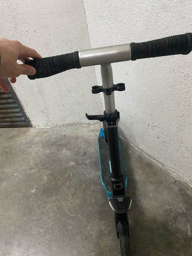 Patinete Oxelo en buen estado, ideal para niños. - Color azul y negro. - Manillar ajustable. - Ruedas resistentes.