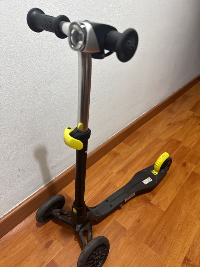Detalles del productoPatinete de tres ruedas diseñado para niños. Cuenta con un manillar ajustable y un diseño llamativo.