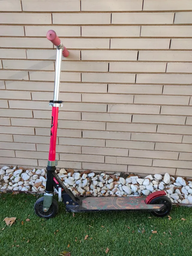 Patinete modelo Oxelo MID 1, ideal para desplazamientos urbanos. - Manillar ajustable en altura. - Ruedas de 120 mm. - Freno trasero. - Plataforma ancha y antideslizante.