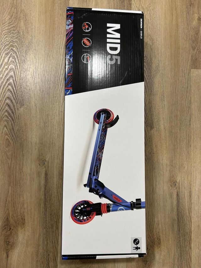 Detalles del productoPatinete Oxelo MID 5 en color azul y rojo. Diseño moderno y llamativo.