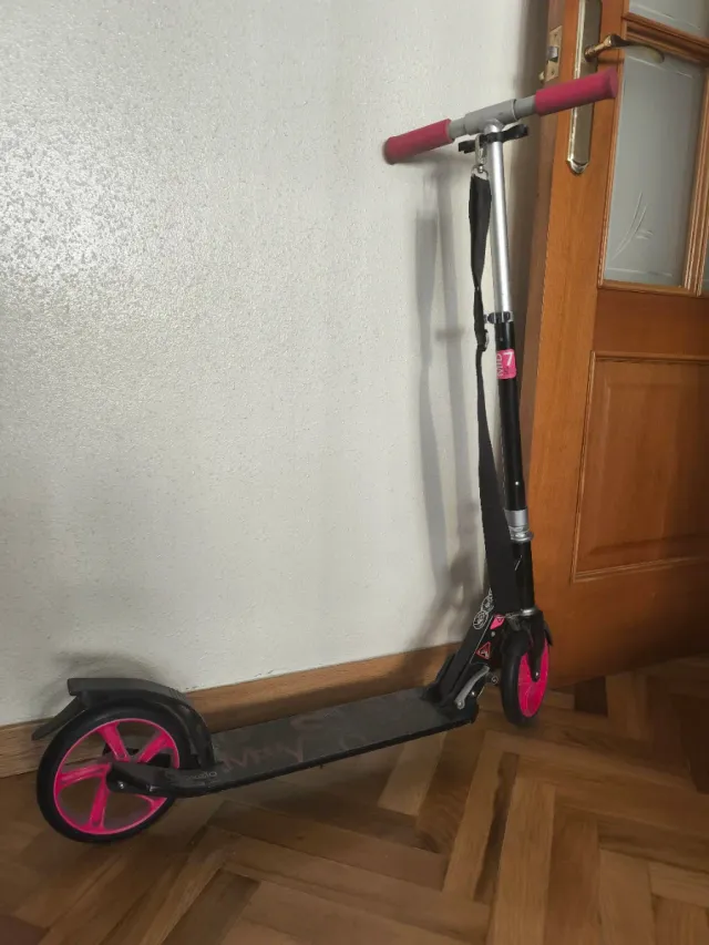 Detalles del productoPatinete Oxelo Mid 7 en color negro y detalles en fucsia.