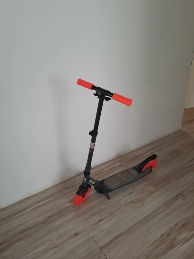 Detalles del productoPatinete Oxelo MID 7 en color negro y naranja, diseñado para niños. Es un patinete plegable y ajustable en altura.