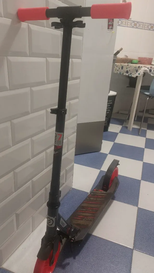 Detalles del productoPatinete Oxelo MID 7 en color negro y naranja, ideal para desplazamientos urbanos.