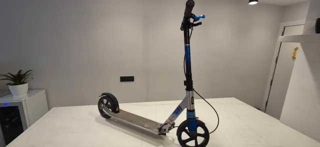 Detalles del productoPatinete Oxelo MID 9 en color plateado y azul. Ideal para desplazamientos urbanos.