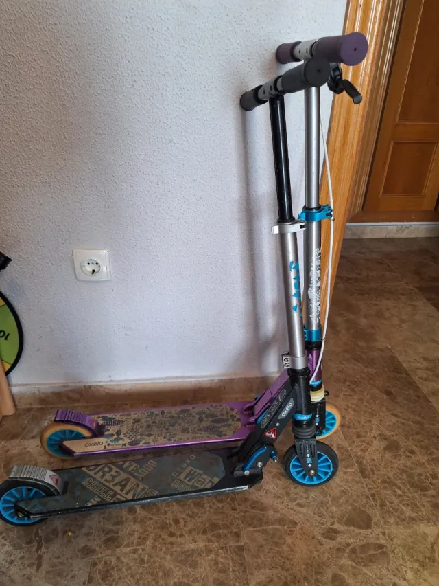 Detalles del productoSe venden dos patinetes Oxelo Mid 5, uno morado y otro negro.