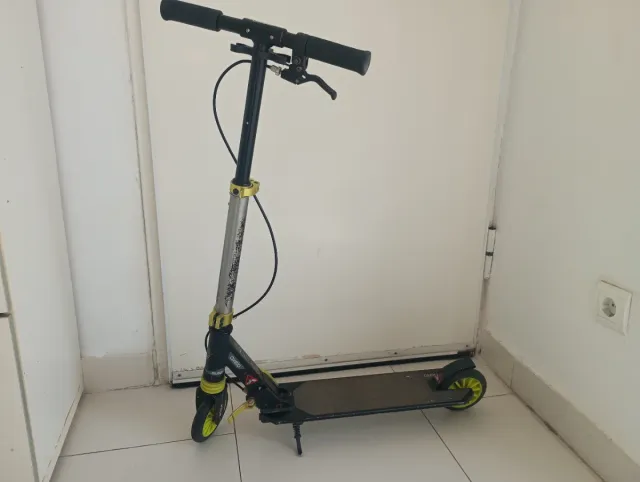 Detalles del productoPatinete Oxelo MID5 de Decathlon en color verde y negro. Ideal para desplazamientos urbanos.