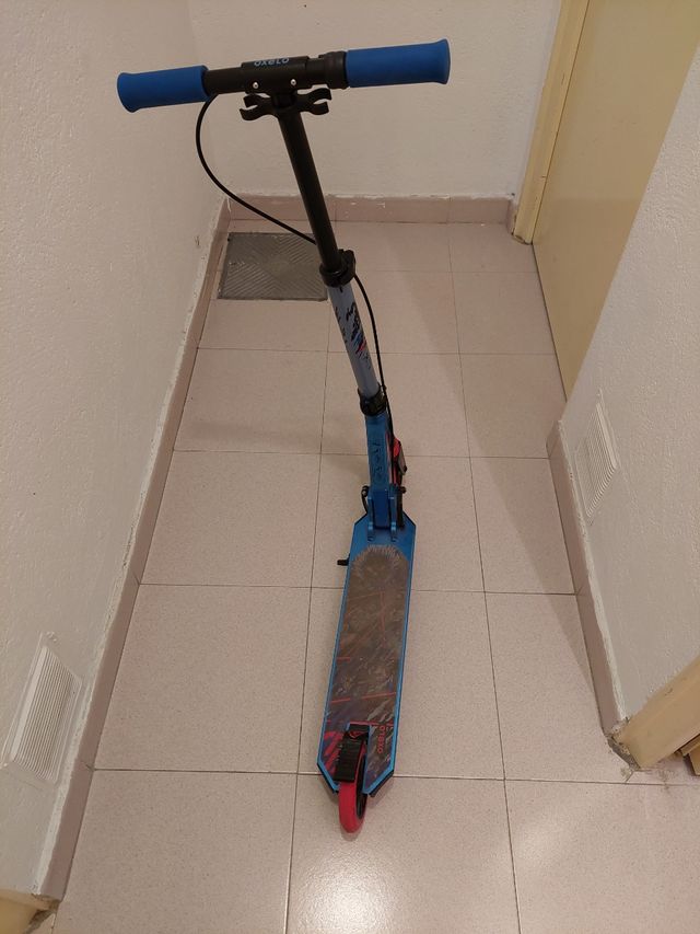 Patinete infantil Oxelo MID5 en buen estado. Ideal para niños. - Freno en el manillar. - Diseño azul y rojo.