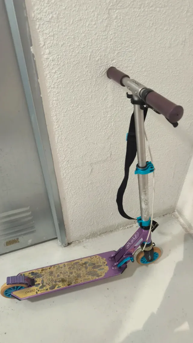 Patín / monopatin / patinete Oxelo para niños, en color lila y turquesa. - Diseño colorido y juvenil. - Ligero y fácil de manejar. - Ideal para niños.