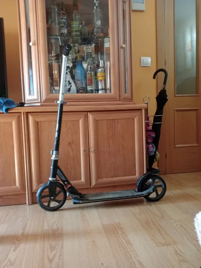 Patinete Oxelo en color negro. - Plataforma ancha. - Ruedas de goma. - Manillar ajustable.