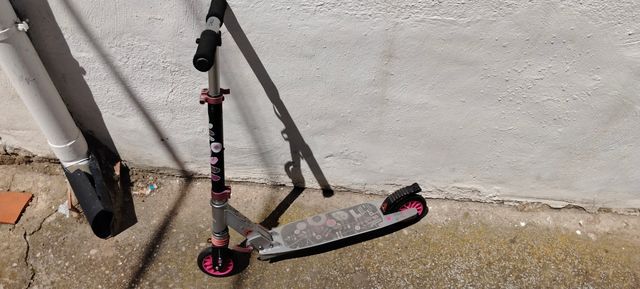 Patinete infantil Oxelo en buen estado. Ideal para niñas. - Diseño con detalles rosas y grises. - Ligero y fácil de manejar. - Perfecto para desplazamientos cortos.