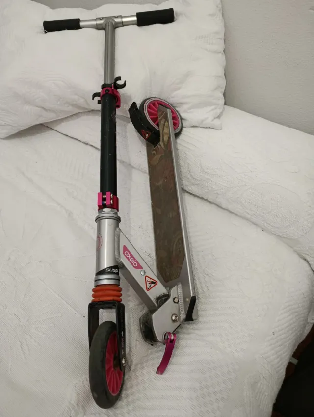 Patinete infantil de la marca Oxelo, con detalles en color rosa. - Manillar ajustable. - Ruedas de color rosa. - Plegable para facilitar su transporte.