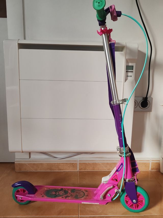 Detalles del productoPatinete Oxelo Play 5 en color rosa y morado, perfecto para divertirse al aire libre. Prácticamente nuevo, se pliega y es muy facil de llevar.