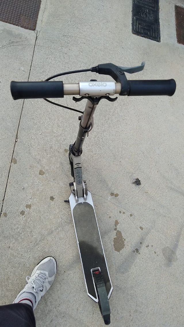 Detalles del productoPatinete Oxelo en buen estado, ideal para desplazamientos urbanos. Es plegable para facilitar su transporte y almacenamiento.