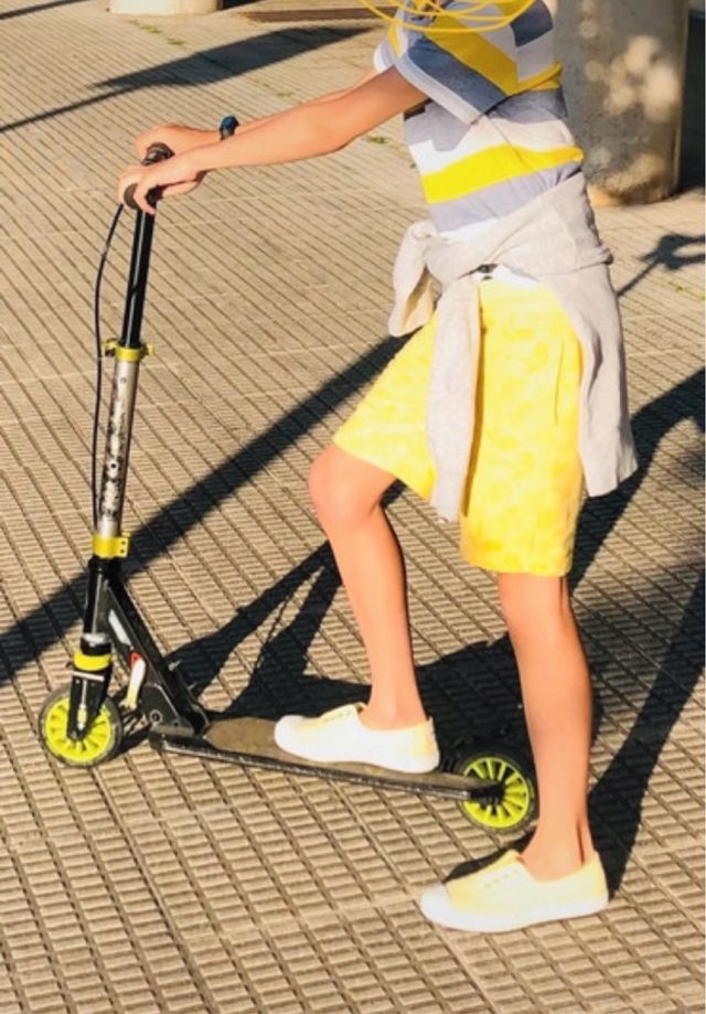 Detalles del productoPatinete Oxelo plegable, ideal para desplazamientos urbanos. Su diseño permite guardarlo fácilmente.